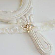 Polecamy także podwiązki ślubne, wykonywane ręcznie z wysokiej jakości materiałów: francuskich koronek i tasiemek, włoskich tiulu . Do dekoracji większości modeli używamy pereł oraz kryształów Swarovskiego. Każdy model wykonywany jest pod indywidualny rozmiar.