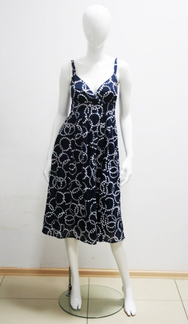 Zwiewna granatowa sukienka w koła.Sukienka na ramiączka. Z tyłu marszczona gumkami. Podszewka. Idealna na lato.