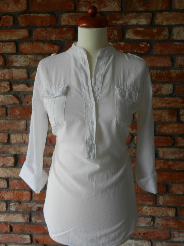 Długa, biała koszula z delikatnej bawełny. Rękaw prosty, bez mankietów.