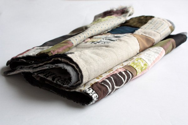 Przedstawiam Państwu unikalny ogromny szal od ekskluzywnej projektantki Henriette Steffensen wykonany metodą typu patchwork. Szal składa się z ponad stu (liczyłam!) przeróżnych łatek, część z nich występuje tylko jeden raz. Kształt i forma żadnego elementu nie jest taka sama, to prawdziwy unikat pod względem kunsztu projektantki. Szal ma jednolitą podszewkę w kolorze szarym. Metka z jednej strony obszyta bardzo delikatnym futerkiem (moim zdaniem jest naturalne).