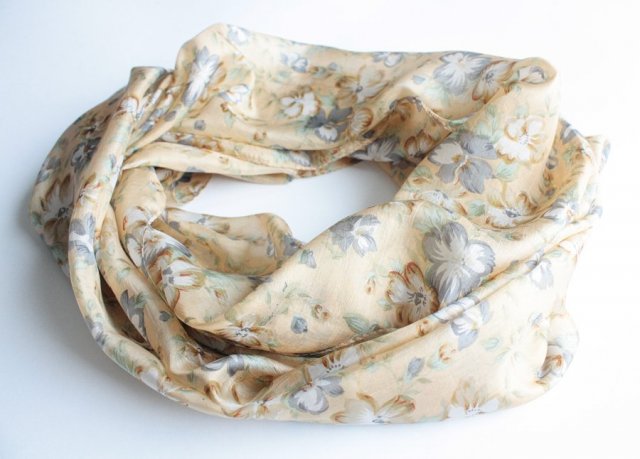 Zwiewny, kwiatowy szal wykonany z naturalnego jedwabiu.