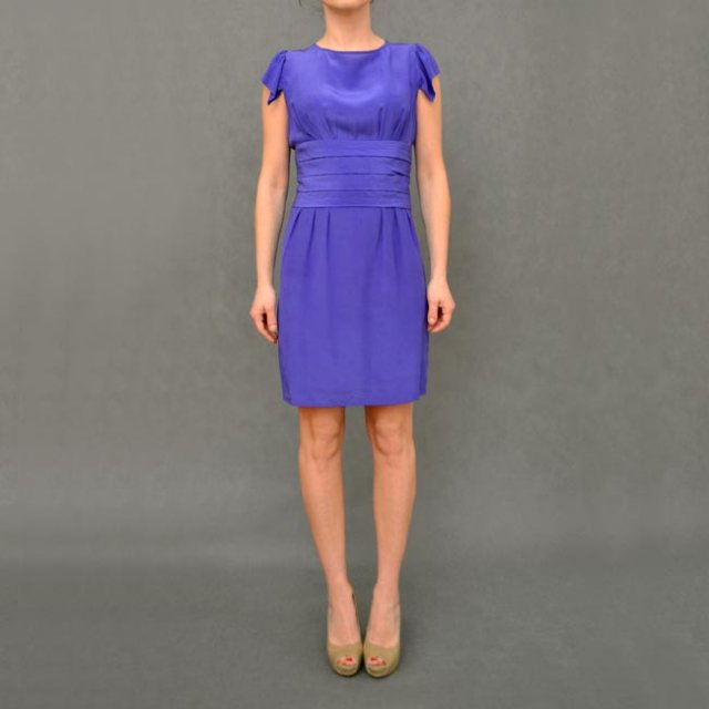 Piękna, fioletowa sukienka marki OASIS. Cała z jedwabiu. Po bokach kieszonki, na ramionach falbanki. Ciekawy tył. Polecam bardzo.