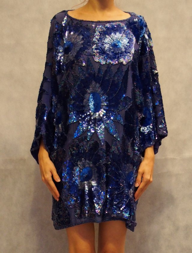 Przecudowna, ekskluzywna, awangardowa - sukienka/długa tunika od Olivera Jamesa. Pięknie zdobiona ręcznie cekinami i koralikami. Materiał: 100% jedwab.