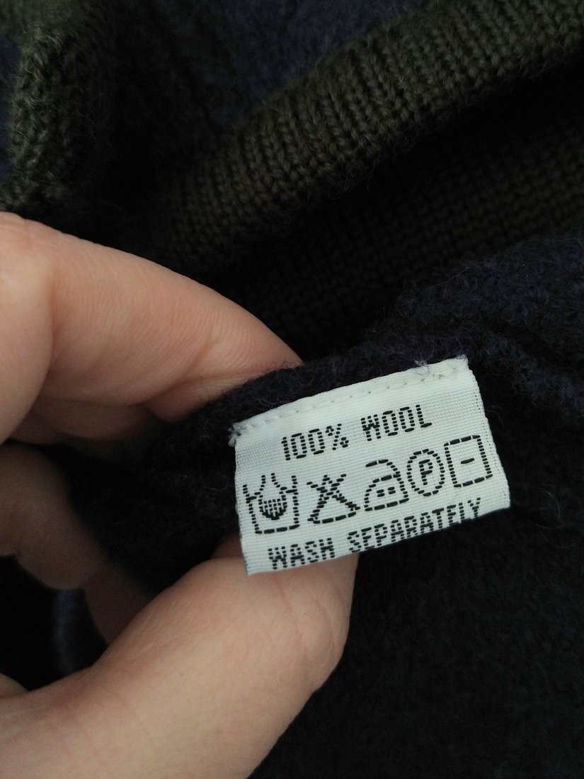 Kurtka jest wykonana z gęstej, parzonej wełny, która po dekadach nadal świetnie trzyma formę i doskonałą jakość, jest bardzo ciepła i odporna na wiatr.
