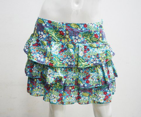Śliczna, bardzo kobieca mini spódniczka w drobne kwiatki. Naszywane falbanki. Karczek. Zapinana na zamek. Idealna na lato!