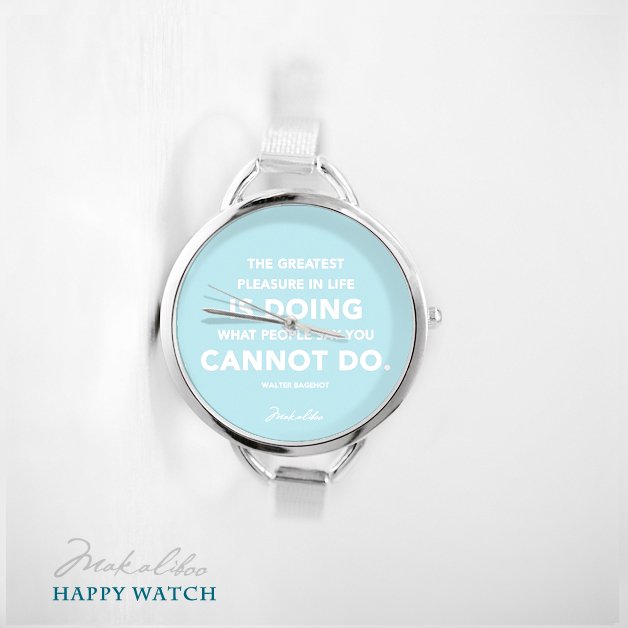 Piękny, dizajnerski, autorski zegarek z cytatem Waltera Bagehota. "The greatest pleasure in life is doing what people say you cannot do".