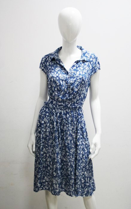 Fantastyczna nowa niebieska sukienka w białe kwiaty i ptaki. Sukienka bez rękawów. Góra koszulowa ( kołnierz i zapinana na guziki). W pasie gumka i pasek. Sukienka z bardzo przyjemnej wiskozowej tkaniny.