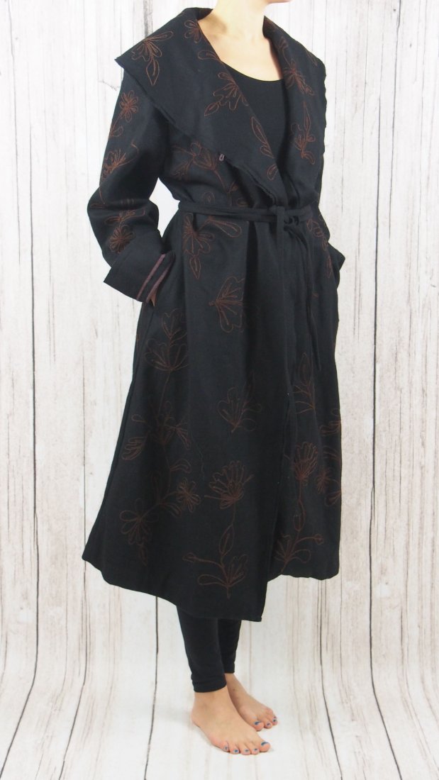 Wełniany płaszcz luksusowej marki BZR. Z pięknym wzorem. Do noszenia albo wiązany w pasie albo też o kroju tzw. pingwin.