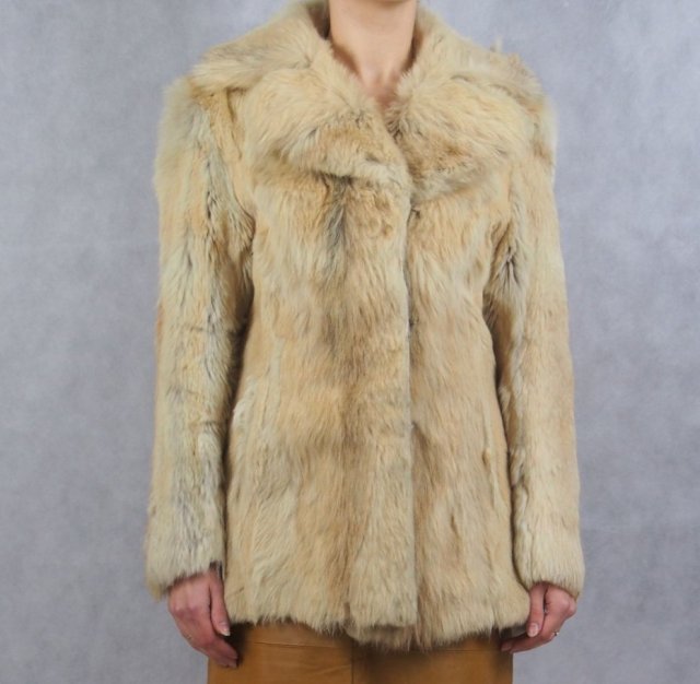 Piękne futerko naturalne moim zdaniem z królika. Piękny krój, w pasie kieszenie. Na podszewce z wiskozy.