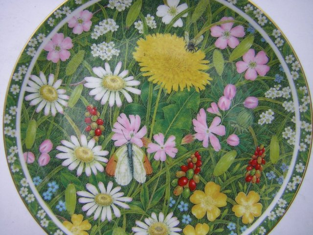Kolekcjonerski talerz porcelanowy sygnowany Coalport Fine Bone China Made in England anne mortimer 1992, reproduced by courtesy of John Bartlett design. Tu " Ash Priory" . Szlachetna, dźwięczna, solidna Porcelana. Kolorowe, radosne kwietno- owadzie zdobienie. Barwy żywe, wykończenie satynowo błyszczące. Rant szlachetnie złocony. Dokładam profesjonalny uchwyt do powieszenia. Fantastyczna rzecz do kolekcji, dekoracji I na oryginalny prezent. Góra 20,5 dół 14 cm wys. 1,5 cm Stan zachowania bardzo dobry.