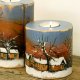 Dwa okragłe świeczniki z ręcznie malowanym zimowym pejzażem.