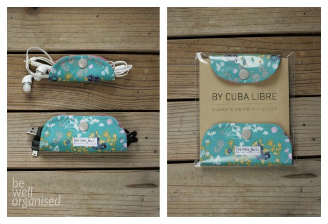Zestaw dwóch uchwytów na kabelki. Mniejszy np. na słuchawki, a większy na ładowarkę czy kabel USB. Zamykane na zatrzaski. Świetne, żeby zapanować nad ładem w torebce :).