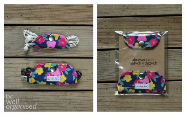 Zestaw dwóch uchwytów na kabelki. Mniejszy np. na słuchawki, a większy na ładowarkę czy kabel USB. Zamykane na zatrzaski. Świetne, żeby zapanować nad ładem w torebce :).