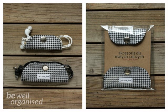Zestaw dwóch uchwytów na kabelki. Mniejszy np. na słuchawki, a większy na ładowarkę czy kabel USB. Zamykane na zatrzaski. Świetne, żeby zapanować nad ładem w torebce :).