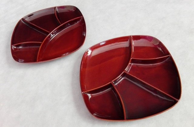 Dwa ceramiczne talerze vintage. Dzielone. Piękne, nasycone-czekoladowe szkliwienie.