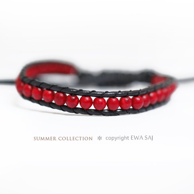 W promocyjnej cenie delikatna, delikatna, piękna, kobieca bransoletka wykonana z 4 mm koralików jasnego howlitu oraz skórzanego czarnego rzemyka o grubości 1 mm. Zaciskowe zapięcie pozwala na dostosowanie wielkości do każdego nadgarstka. Idealna na nadgarstek 13-17 cm.