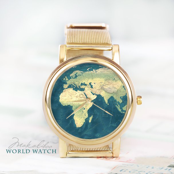 Niepowtarzalny, autorski zegarek z limitowanej kolekcji "World Watch". Wielkość tarczy zegarka 40 mm, szerokość paseczka 20 mm. Pasek to bawełniany pleciony sznurek obszyty łańcuszkiem. Pasuje na nadgarstek 15- 19 cm.