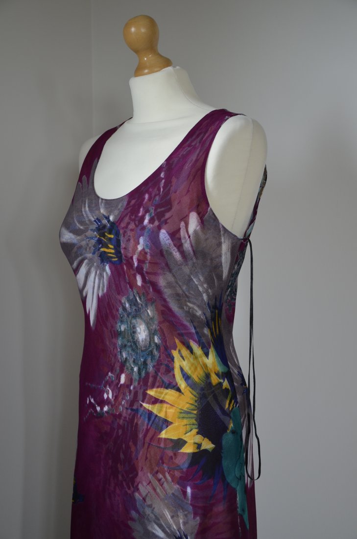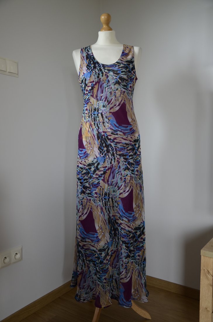 uszyta ze skosu dlatego jest rozciągliwa i powinna pasować na 38 i 40 (dla porównania manekin to S/M); stan bardzo dobry