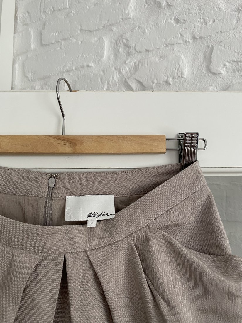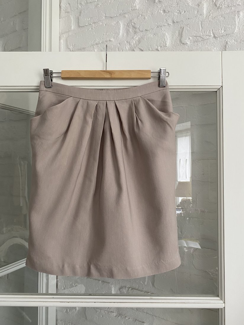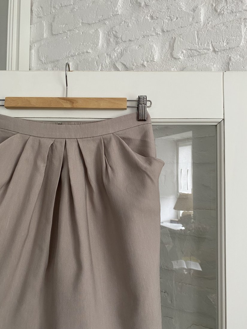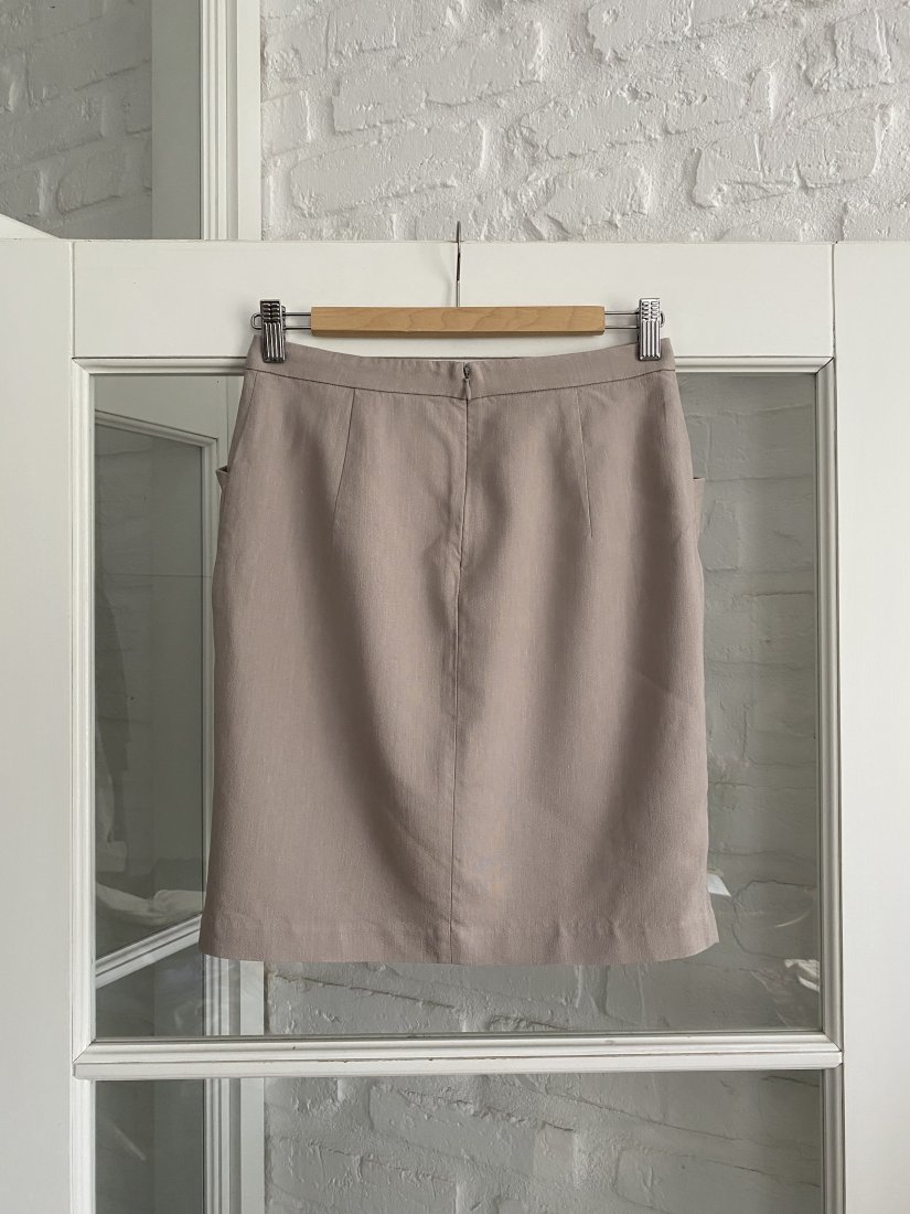 Popielata spódnica z wysoką talią i bocznymi kieszeniami.