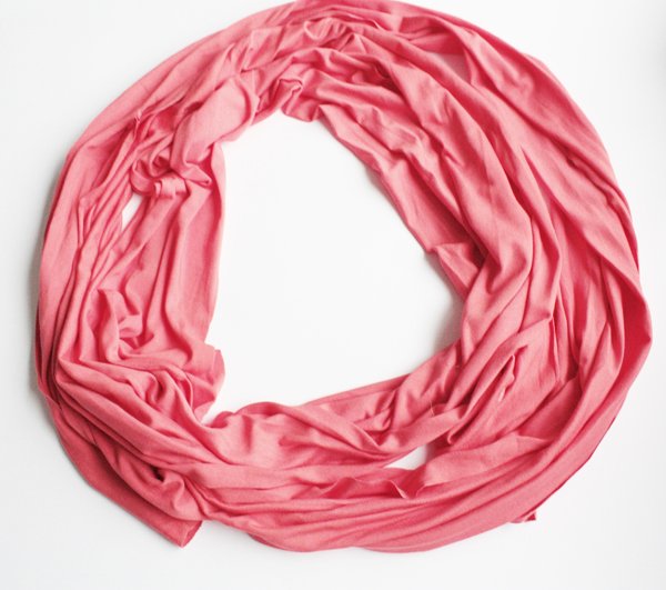 Koralowy dlugi szal dający mnóstwo możliwości stylizacji. Surowe wykończenie, bez obszycia. Można po prostu przeciąć i uzyskać dwa szale:)