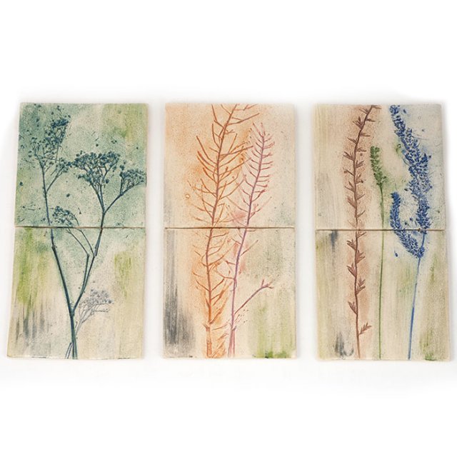 Rośliny odciskane na kaflach mogą się różnić od tych na zdjęciu, w zależności od ich aktualnej dostępności. Zastosowane rośliny będą takie same lub podobne, przy zachowaniu ogólnej kompozycji obrazu na dekorach.