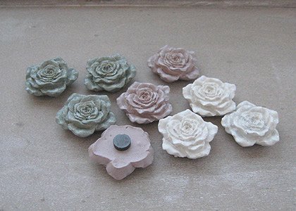 Komplet 3 magnesików szarych różyczek.