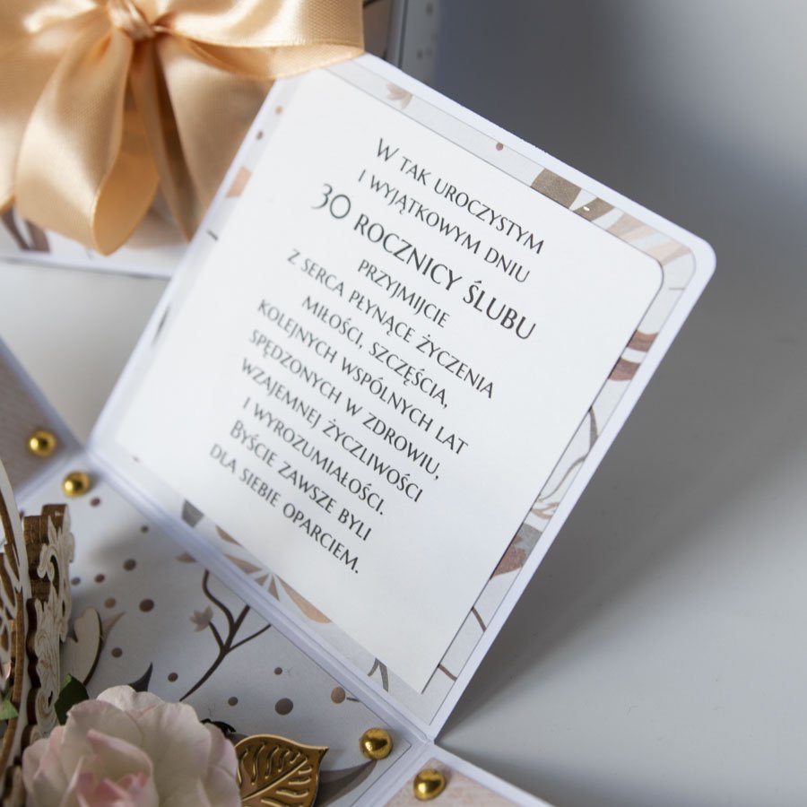 Ręcznie robiona kartka z okazji 30 rocznicy ślubu w formie rozkładanego pudełeczka.