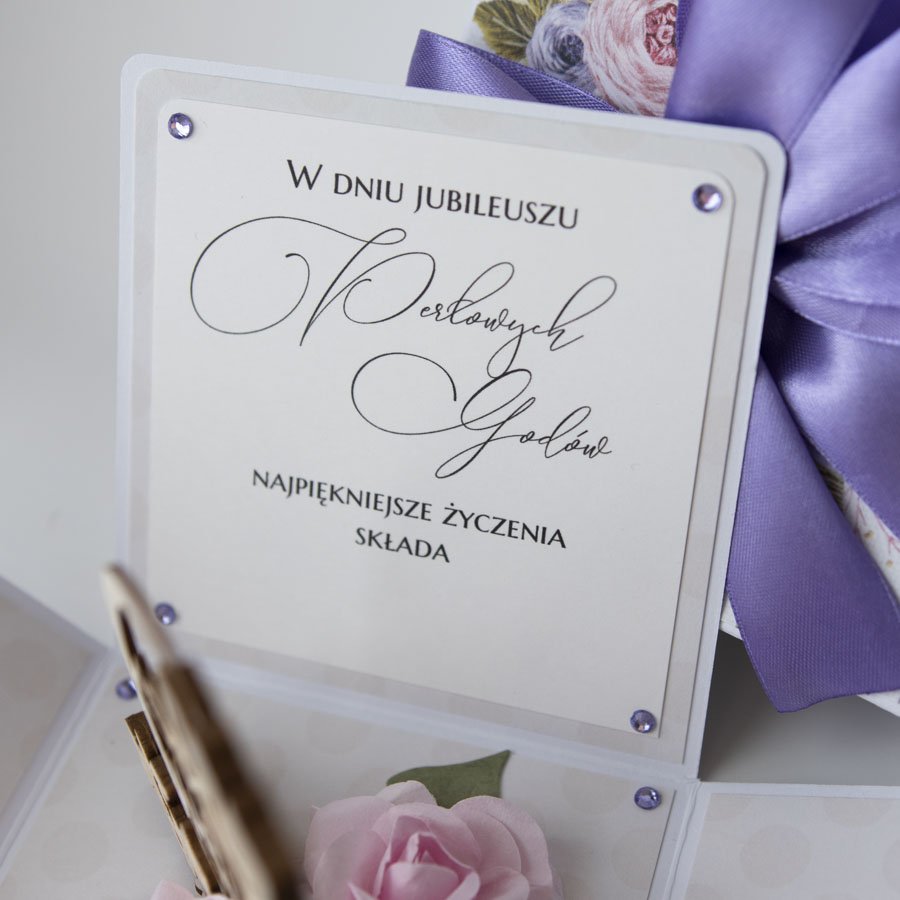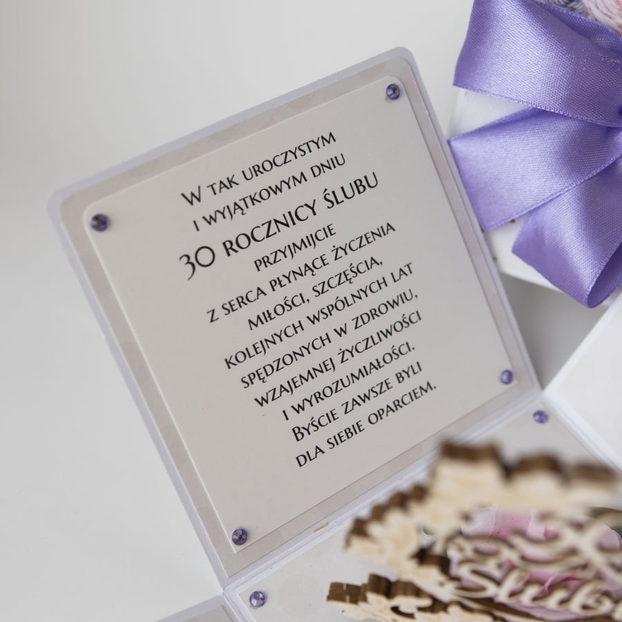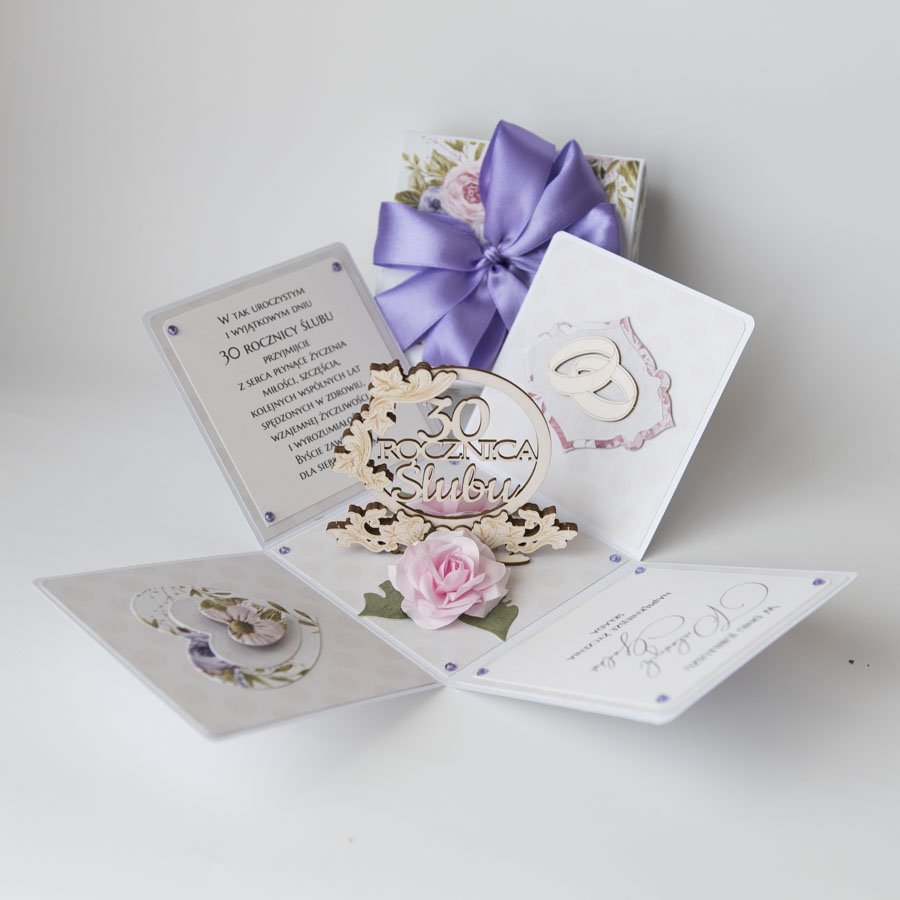 Ręcznie robiona kartka z okazji 30 rocznicy ślubu w formie rozkładanego pudełeczka.