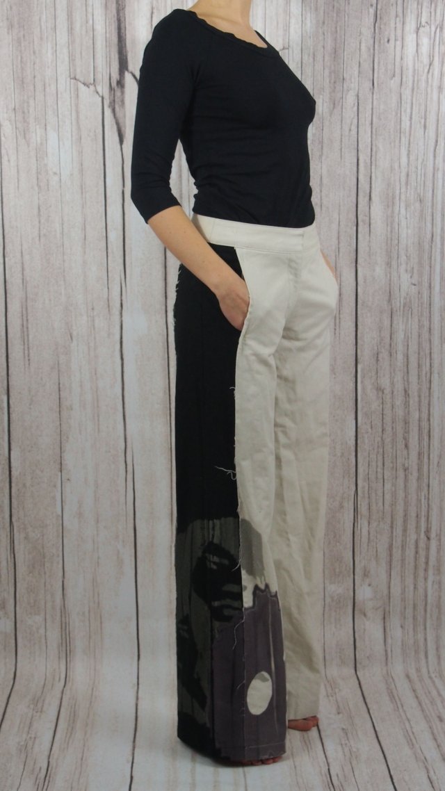Jeansowe spodnie polskiej ekskluzywnej marki Solar. Ukryte twarze. Krój surowy, brzegi niewykończone. 100% bawełna.
