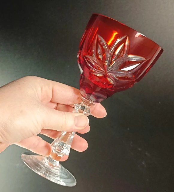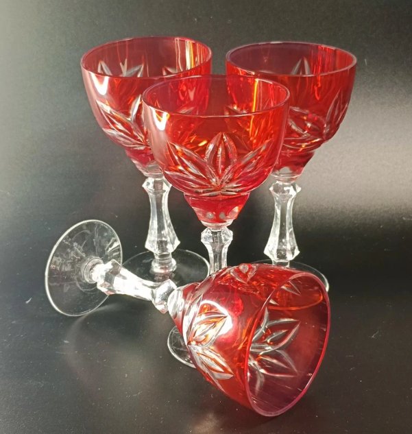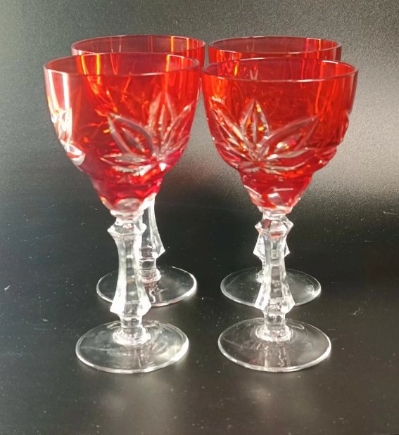 Zestaw 4 kieliszków z dwukolorowego szkła, ciosane.