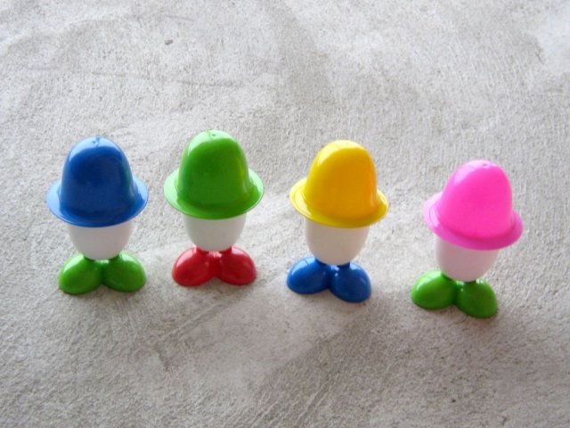 4 plastikowe pojemniczki-"jajko w butach i kapeluszu".