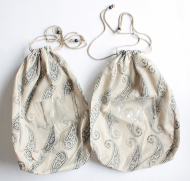 Cztery praktyczne woreczki z okienkiem do przechowywania. Wykonane z materiału przypominającego fizelinę.