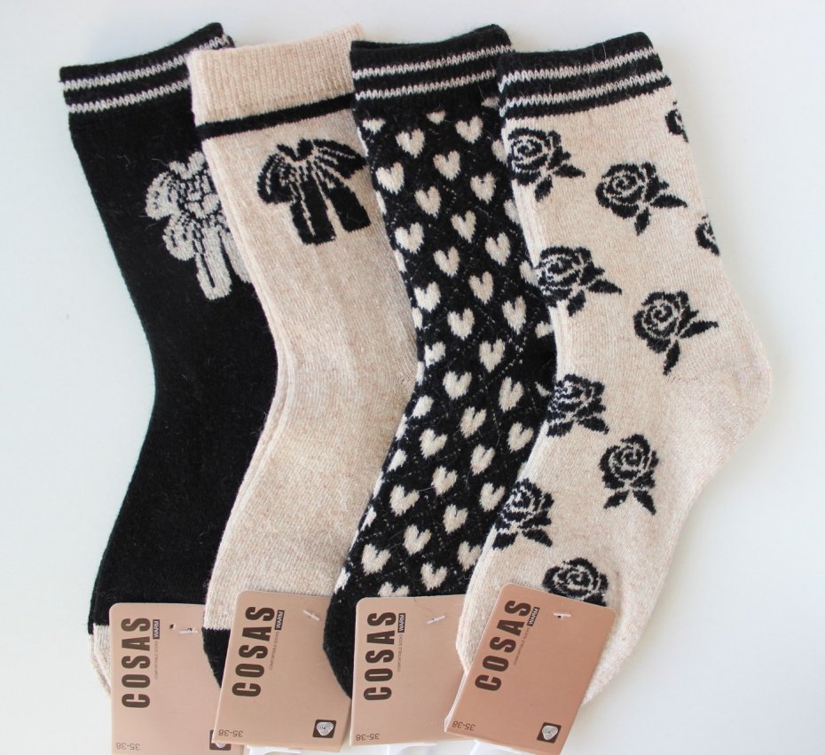 Zestaw 4 par skarpetek damskich wełnianych. Rozmiar 35-38.