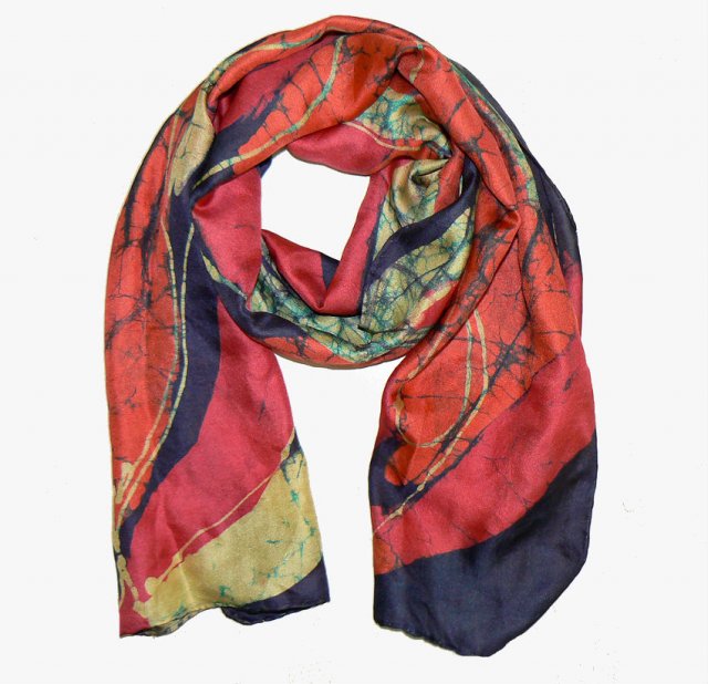 Piękny szal w intensywnych kolorach, ręcznie barwiony. Rolowane brzegi. Cieniutki i zwiewny, miękko się układa.
