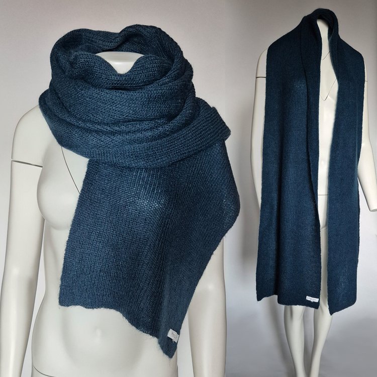 Part Two Copenhagen, szalik Part Two, wełniany szalik, szalik premium, premium scarf, wool blend scarf, mohair blend scarf, dzianinowy szal, open knit scarf, teal scarf, petrol scarf, niebieski szal, zimowy szal, ciepły szal, skandynawska moda, minimalistyczny styl, capsule wardrobe, cosy knit, SveaPW Scarf, oversized scarf, long scarf