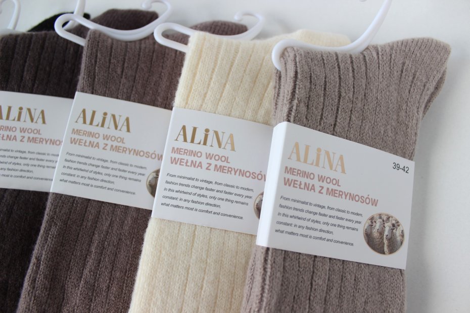 Zestaw 5 par skarpetek damskich merino. Rozmiar 39-42.