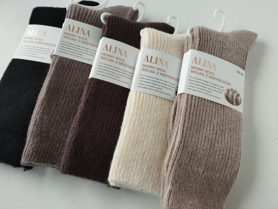 Zestaw 5 par skarpetek damskich merino. Rozmiar 39-42.