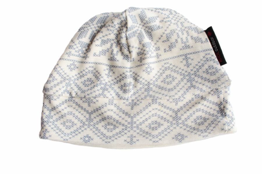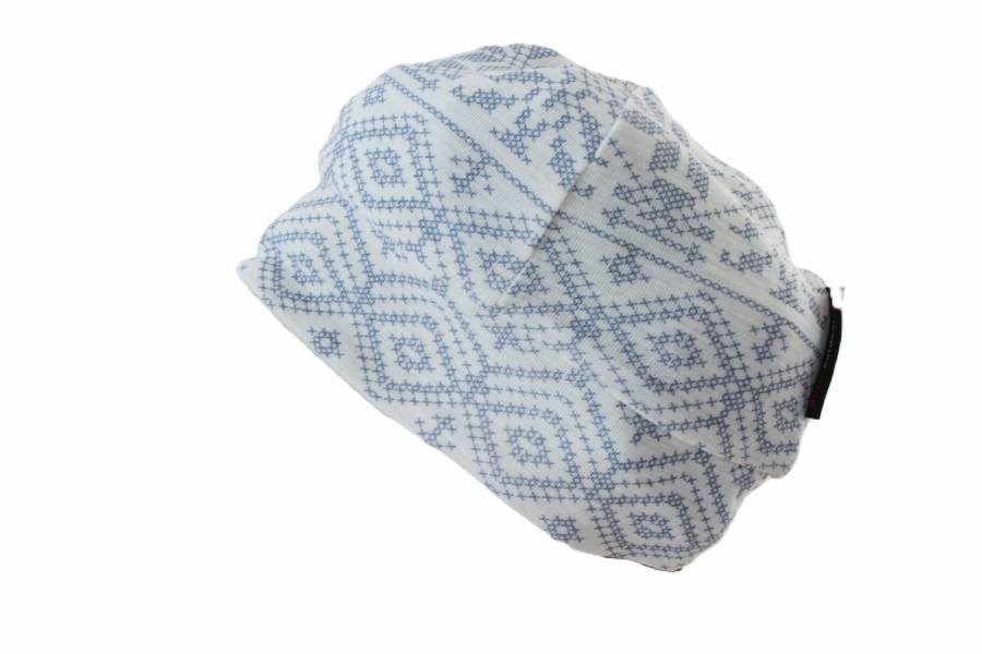Kremowa czapka vintage w subtelne wzory. Cienka, ale w połowie wykonana z wełny. Odpowiednia na większą część roku :)