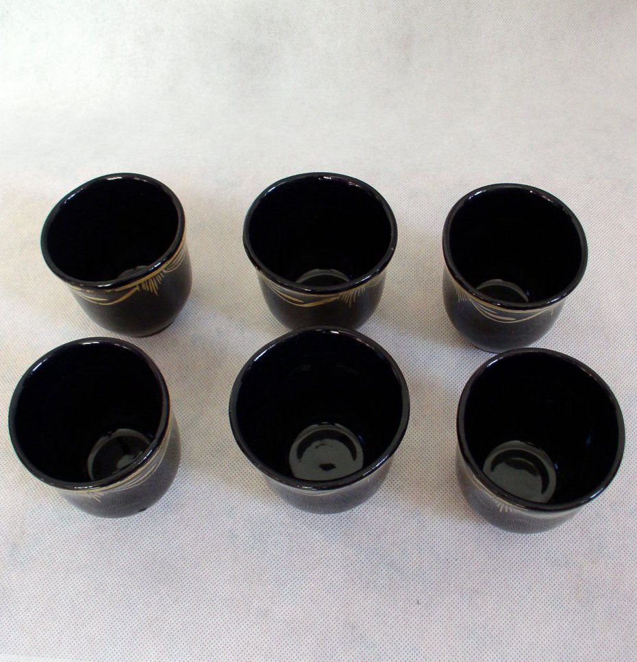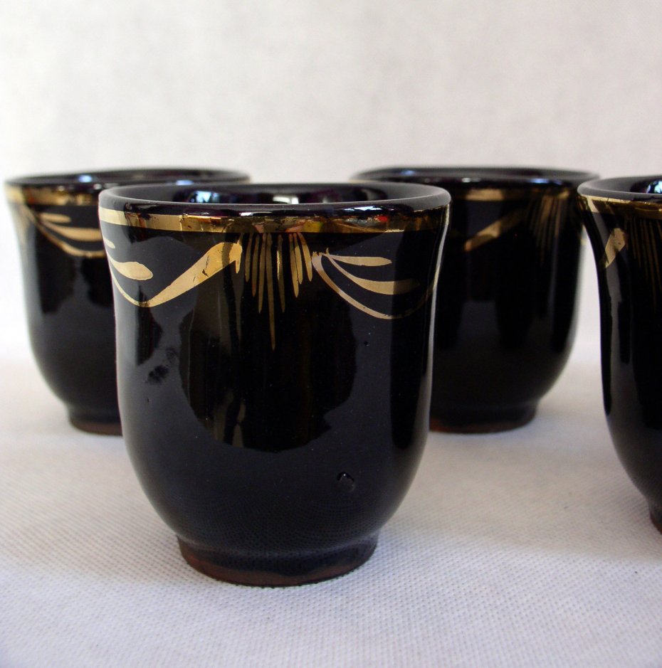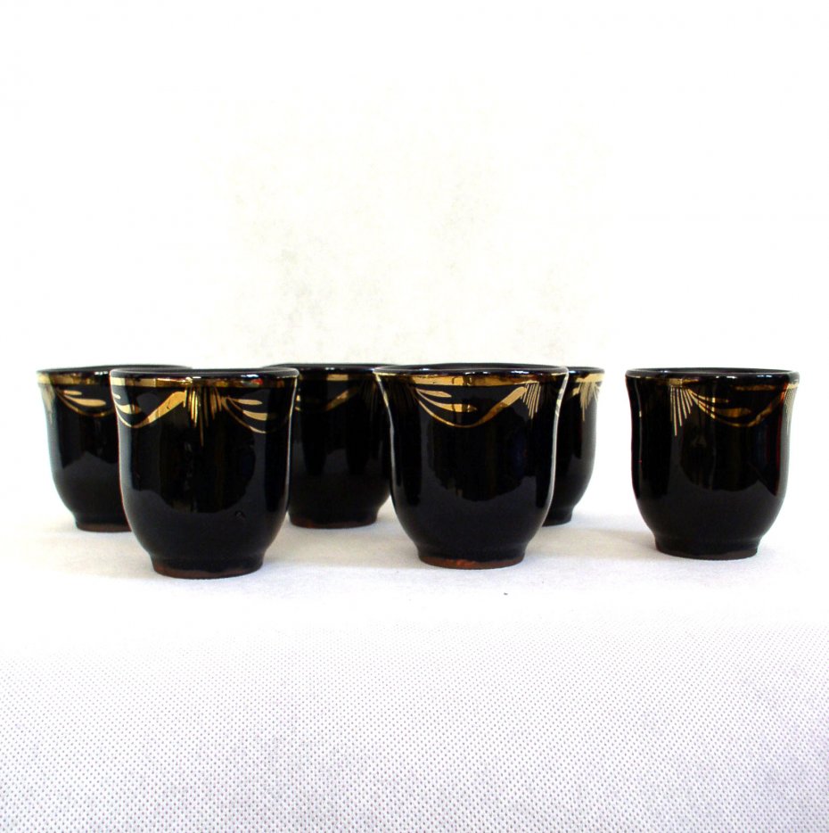 Sześć kubeczków porcelitowych z okresu PRL-u. W stylu Pruszkowa.