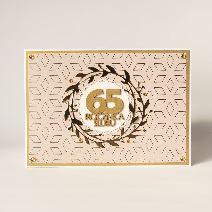 Duża ręcznie robiona kartka z okazji 65 rocznicy ślubu.