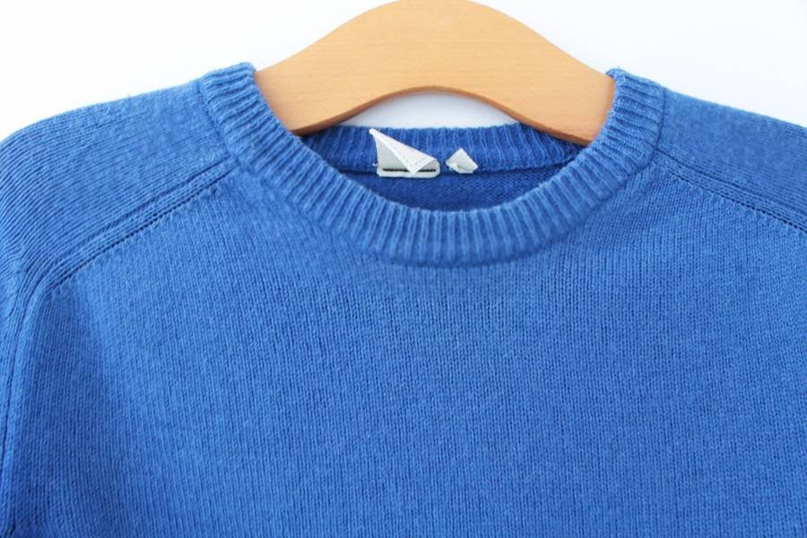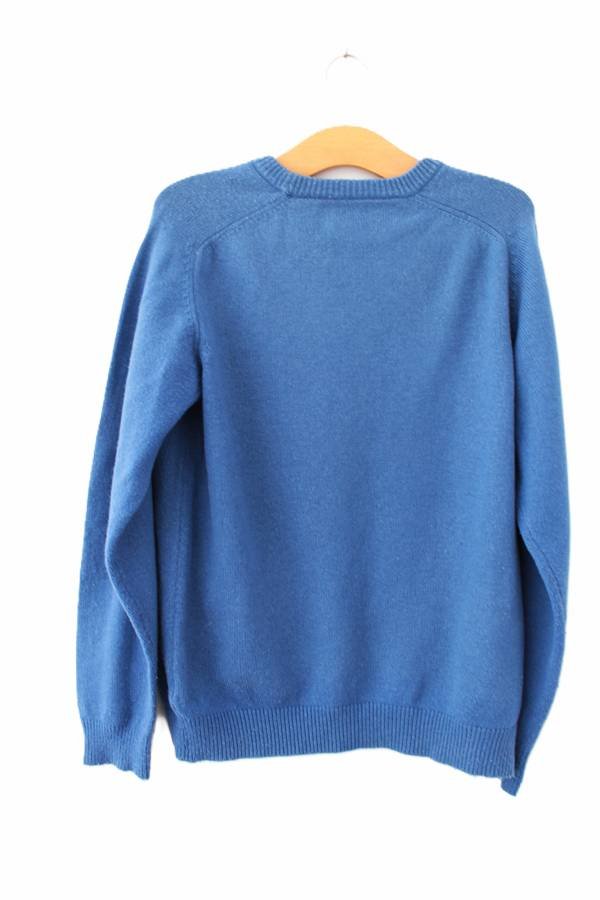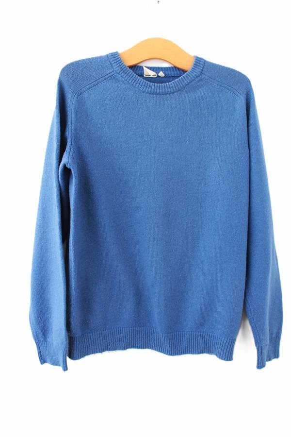 Niebieski sweter vintage z przewagą wełny w składzie marki Cotton Traders. Ze względu na klasyczny krój może być damski lub męski.