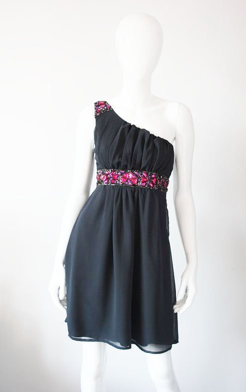 Piękna, szara sukienka na jedno ramię marki Rise. Sukienka pięknie marszczona. Na ramieniu oraz w pasie zdobiona koralikami. Z tyłu marszczona gumeczkami i wiązana. Idealna na specjalną okazję! Podszewka.