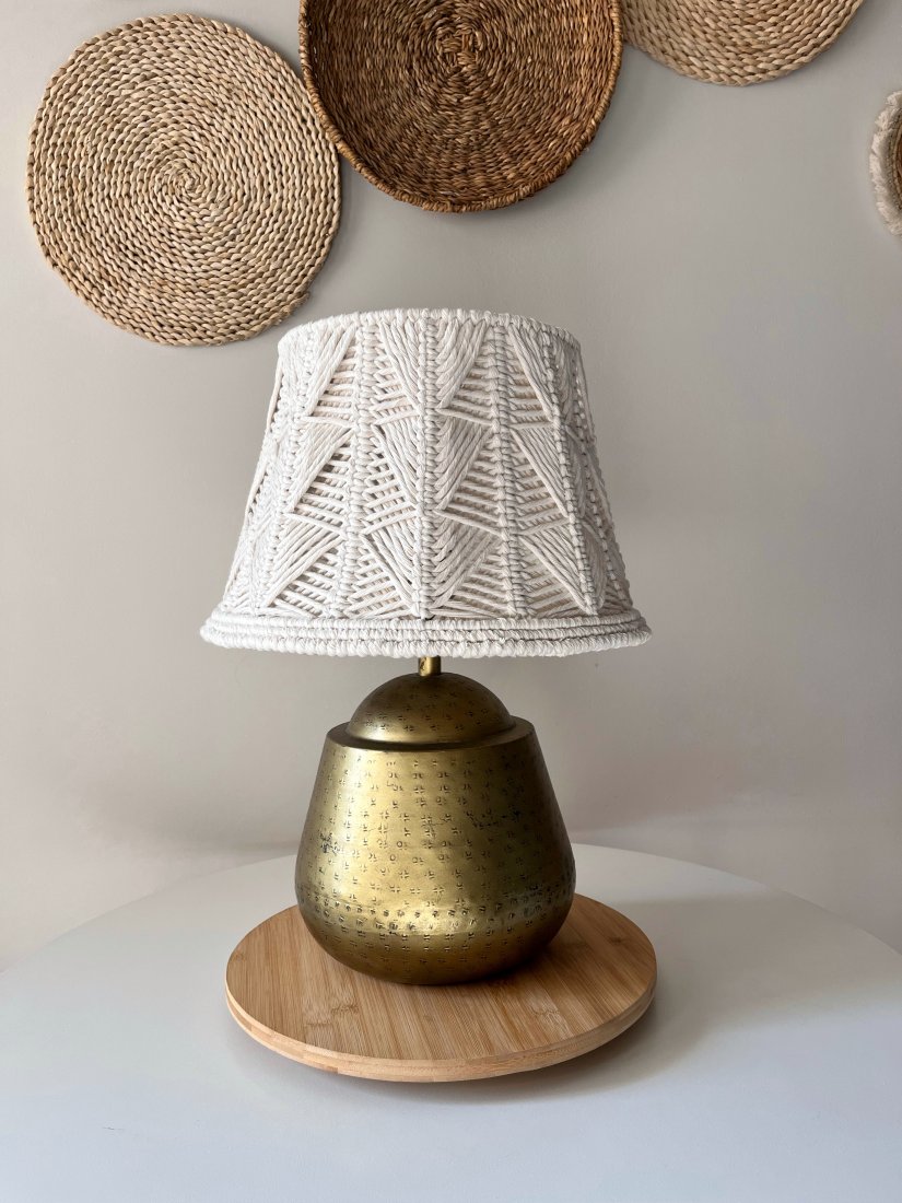 Dodaj swojej przestrzeni ciepła i niepowtarzalnego charakteru dzięki ręcznie robionemu abażurowi wykonanemu techniką makramy. Starannie pleciony wzór nadaje lampie lekkości i subtelnej boho estetyki, a naturalny bawełniany sznurek wprowadza do wnętrza przytulność i harmonię