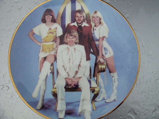 Talerz z jakościowej porcelany z dziurką do powieszenia z tylu. Wykończenie błyszczące i zdjęcie ikony muzyki rozrywkowej lat 70ych zespołu ABBA. Seria bardzo limitowana,więc obrazek to wielce rzadki :) Stylistyka lat 70ych. Rant złocony.