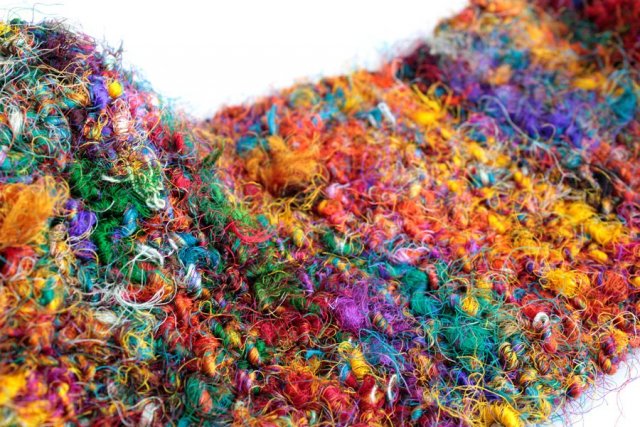 Wielobarwny szal o niespotykanej fakturze, tkany w oryginalny sposób.