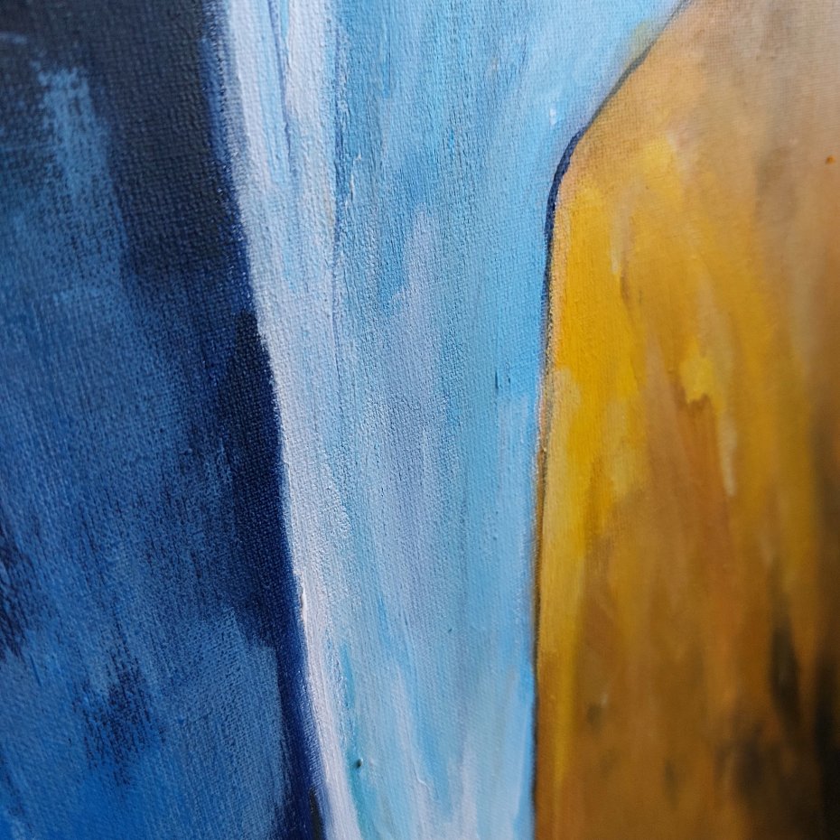 Obraz namalowany w technice akrylowej na profesjonalnym, fabrycznym płótnie bawełnianym o wymiarach 50/70 cm. Obraz posiada pomalowane boki. Nadaje się od razu do powieszenia na ścianie. Obraz jest sygnowany, sprzedawany bez oprawy. Zapraszam