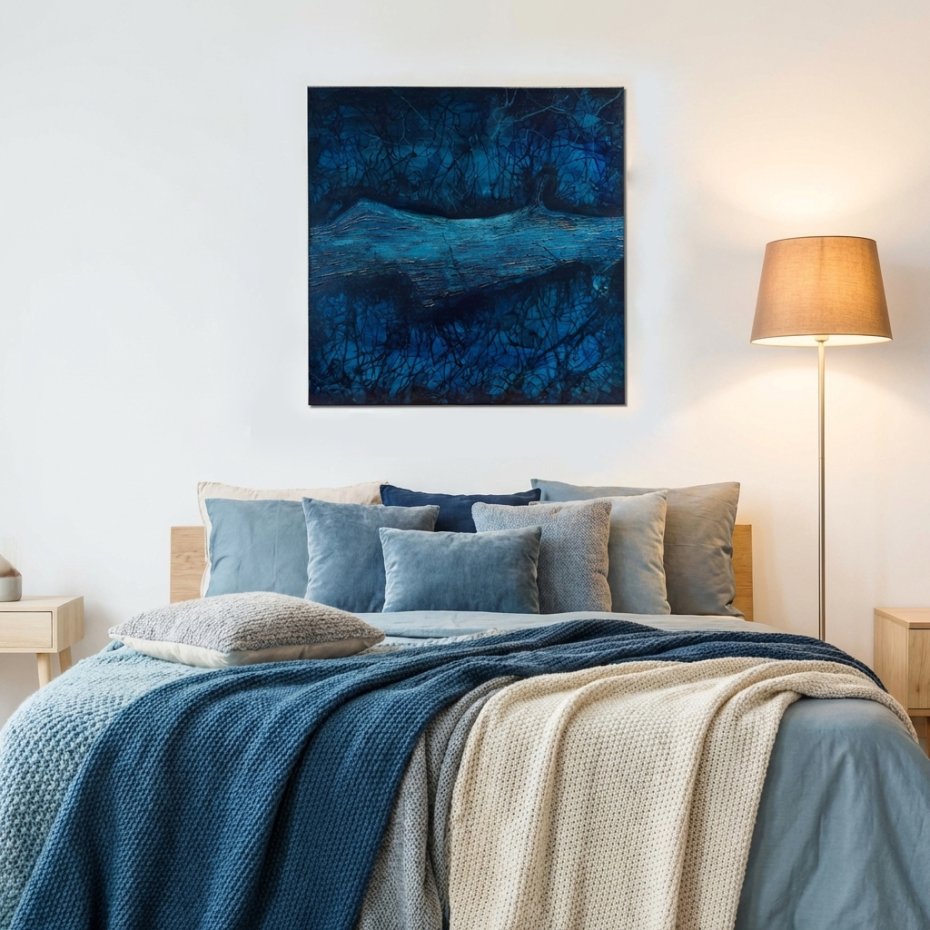 Ręcznie malowany obraz z trójwymiarową fakturą farbami akrylowymi na płótnie.