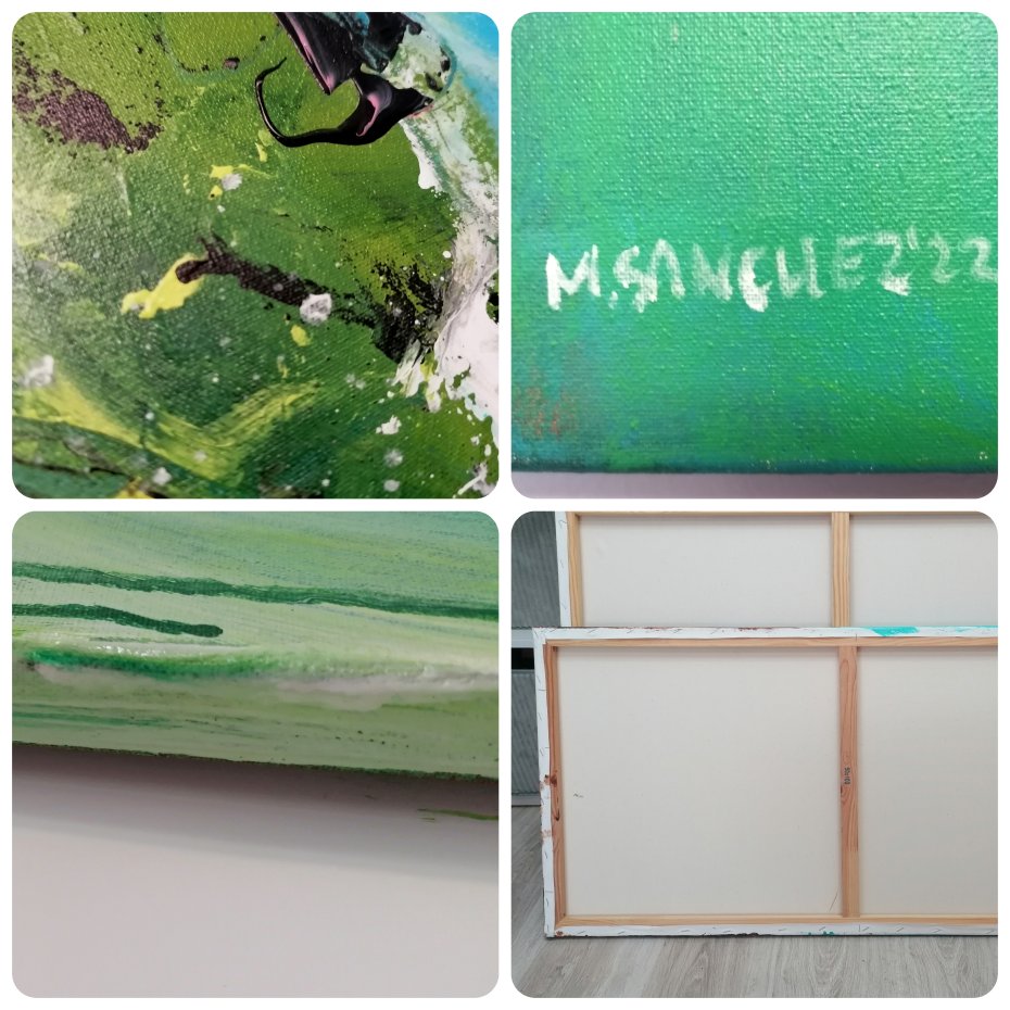 BEZPIECZEŃSTWO I UŻYTKOWANIE Do montażu należy użyć solidnych uchwytów (np. haki, gwoździe, kołki rozporowe, taśmy 3M – odpowiednie do rodzaju ściany). Do czyszczenia należy używać miękkiej, lekko wilgotnej szmatki. Farba akrylowa tworzy elastyczną, zwartą powłokę odporną na lekkie przetarcia wodą. Nie stosować silnych detergentów. Obrazów nie wolno wieszać na zewnątrz lub w wilgotnych pomieszczeniach jak np. łazienka. Płótno wchłonie wilgoć - w rezultacie akrylowa powłoka może zacząć oddzielać się od podobrazia. Obraz zawiera elementy drewniane (krosna malarskie) – istnieje ryzyko drobnych drzazg. Obraz nie jest zabawką – nie przeznaczony dla dzieci. Ramy i uchwyty montażowe mogą stanowić zagrożenie w przypadku niewłaściwego użycia. Obraz należy montować na stabilnych hakach/gwoździach/kołkach dopasowanych do rodzaju ściany. Twórca nie odpowiada za szkody wynikające z nieprawidłowego montażu. Obrazy są tworzone przy użyciu profesjonalnych, nietoksycznych farb akrylowych Amsterdam Talens, które spełniają międzynarodowe normy bezpieczeństwa dla materiałów artystycznych. Obraz nie zawiera substancji toksycznych, drażniących ani wydzielających zapachy szkodliwe dla zdrowia. Obrazy są przeznaczone wyłącznie do dekoracji wnętrz i zgodnie z przeznaczeniem nie stanowią zagrożenia dla użytkowników, pod warunkiem stosowania się do instrukcji montażu i użytkowania.