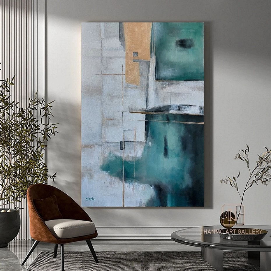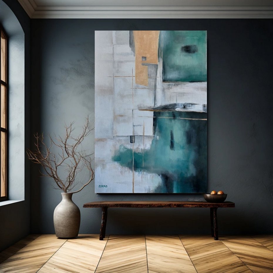 Obraz pt.: Abstrakcja ,zieleń ze złotem - niepowtarzalny.