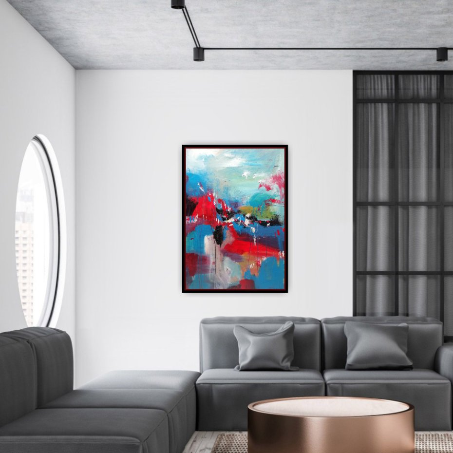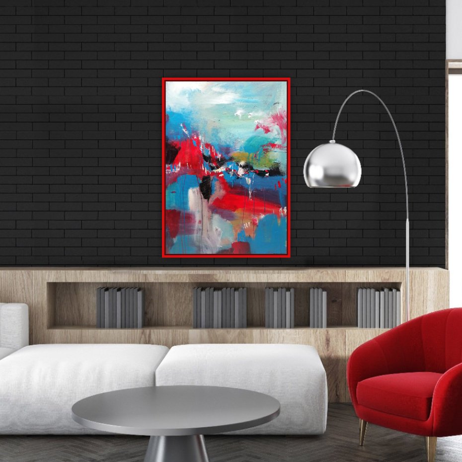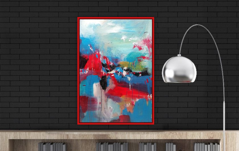 Wizualizacje we wnętrzach mają charakter poglądowy. Obraz nie posiada ramy - do oprawienia we własnym zakresie. Rekomendowany kolor ramy: biały, czarny, a dla odważnych - czerwony (odcienie z obrazu)